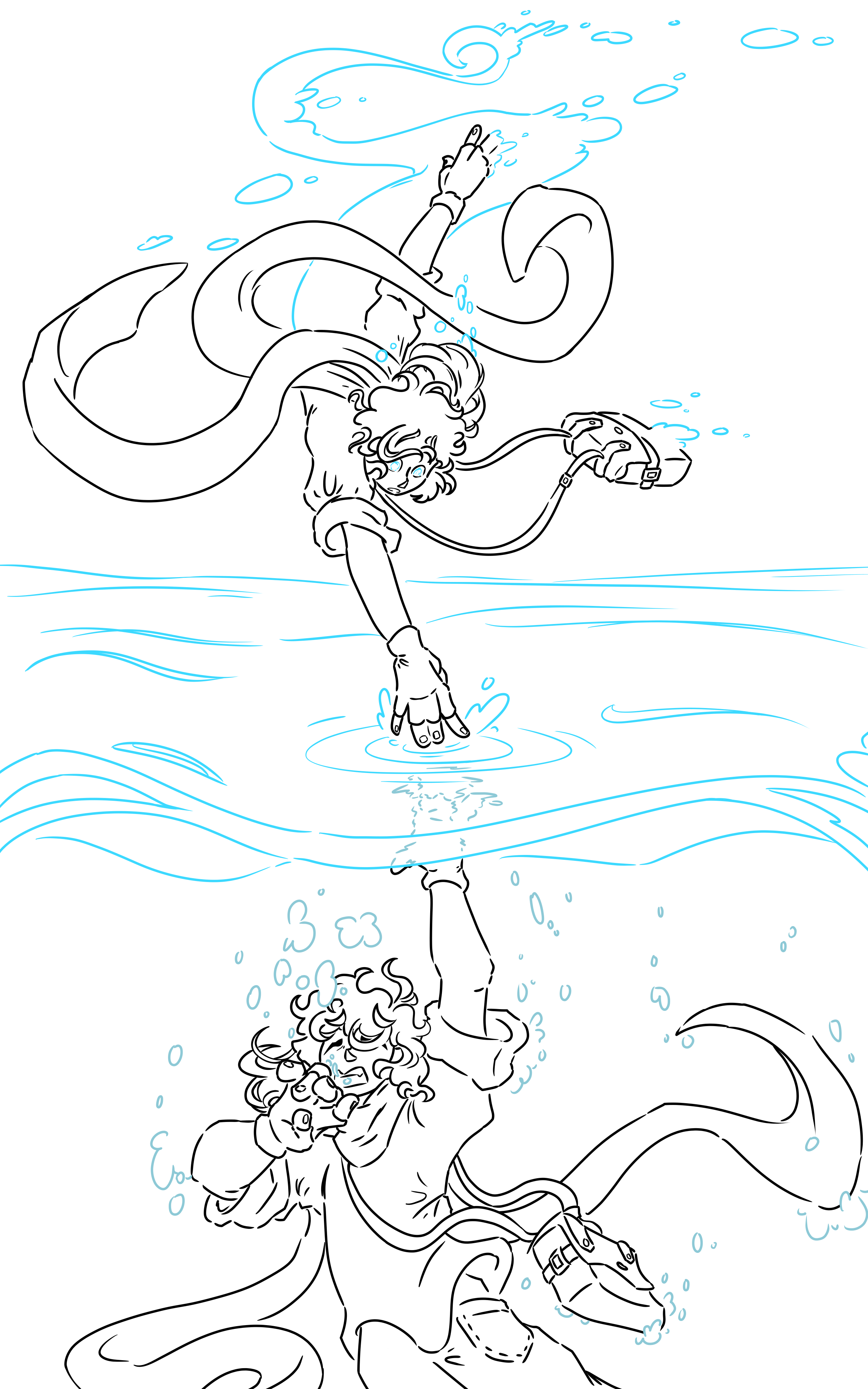– First, I typically sketch out a concept or the whole drawing on paper or immediately jump into doing the sketching digitally. I usually leave out a bunch of details or shading at this point, and I don’t use any colour. For all my paper sketches, I only use pencils.